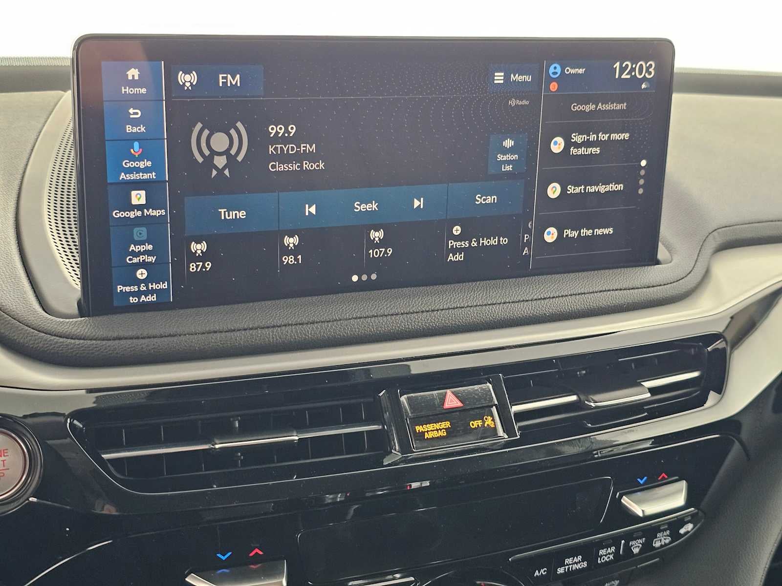 - Radio: AM/FM Acura Premium Audio System -inc: 11 speakers, 12.3" color touchscreen, Wi-Fi hotspot capability, natural language voice recognition, AcuraLink connected services, AcuraLink security and remote services (3 years), wireless Apple CarPlay and Android Auto compatibility, Alexa built-in, Google built-in, Bluetooth® HandsFreeLink wireless telephone interface, HD Radio, USB audio interface, Bluetooth® streaming audio and Speed-Sensitive Volume Compensation (SVC)