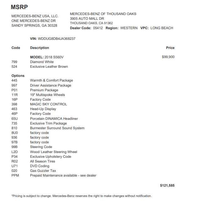 PREMIUM PACKAGE Power Rear-Window Sunshades, Parking Pilot w/Surround View System, HANDS-FREE ACCESS, Multicontour Front Seats w/Massage Feature, Heated & Ventilated Front Seats, Surround View Camera, Keyless GO® Comfort Package, Keyless GO®, Front Variable Heated Seats, WARMTH & COMFORT PACKAGE Heated Rear Armrests, Warmth & Comfort Package (P69), Power Rear Seats, Rear Memory Seats, Heated Steering Wheel, 3-Spoke Wood & Leather Steering Wheel, touch control buttons, Heated & Active Ventilated Rear Seats, Rear Variable Heated Seats, Heated Front Armrests, DRIVER ASSISTANCE PACKAGE Active Distance Assist DISTRONIC®, Active Steering Assist, Speed Limit Assist, Automatic Speed Takeover, Extended Restart by Stop & Go, Active Lane Change Assist, Route Based Speed Adaptation, Driver Assistance Package (23P), HEAD-UP DISPLAY, Leather Seats, Navigation, Panoramic Roof, Power Liftgate, Turbocharged Mercedes-Benz of Thousand Oaks is your local Mercedes-Benz dealership, serving the Thousand Oaks and Los Angeles Metro area since 1982. Our showroom always includes the most current luxurious and sophisticated Mercedes-Benz models. Were only a short trip from many communities, including Malibu and Simi Valley, and our team is happy to provide sales, financing, and automotive service and repair on site.