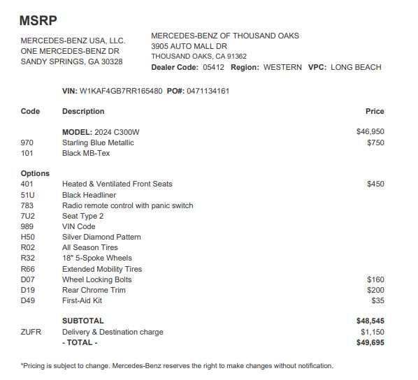 - Vehicle Name: Mercedes-Benz C-Class