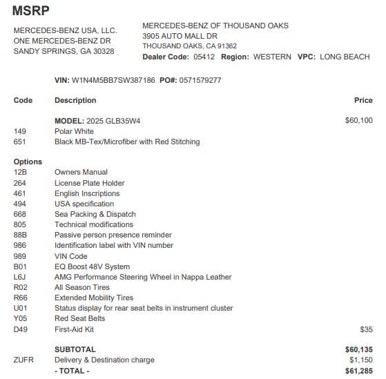 - Vehicle Name: Mercedes-Benz GLB
